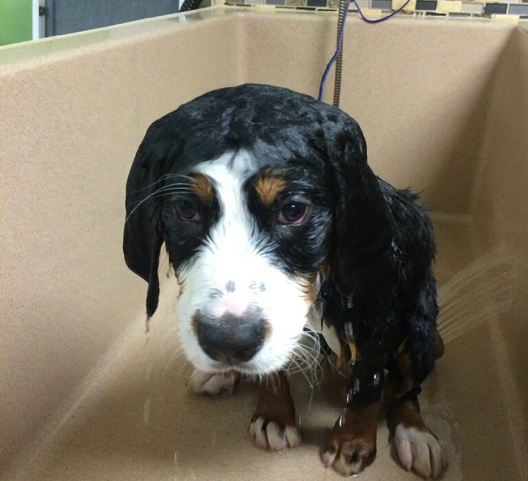 What is it about dogs getting bathed that makes them so miserable? Do they feel defeated knowing there is no escaping the inevitable clean they face to experience? Is it a feeling of sadness or loss that all the built up smell they have accumulated since last bath will be gone? They wear this look on their face the ENTIRE time their furry bodies are soaking in the tub or shower. This look they bear as if embarrassed or humiliated by the routine of cleanliness is too much.